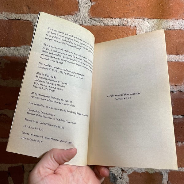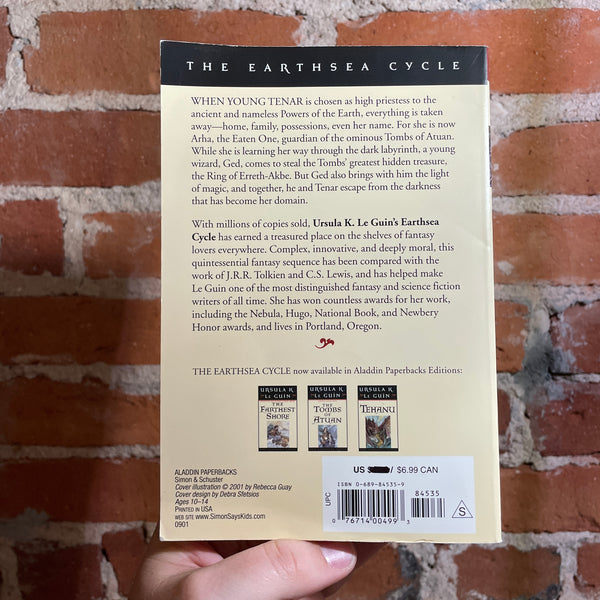 While she is learning her way through the dark labyrinth, a young wizard, Ged, comes to steal the Tombs' greatest hidden treasure, the Ring of Erreth-Akbe. But Ged also brings with him the light of magic, and together, he and Tenar escape from the darkness that has become her domain.