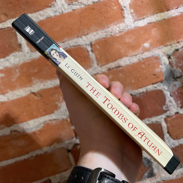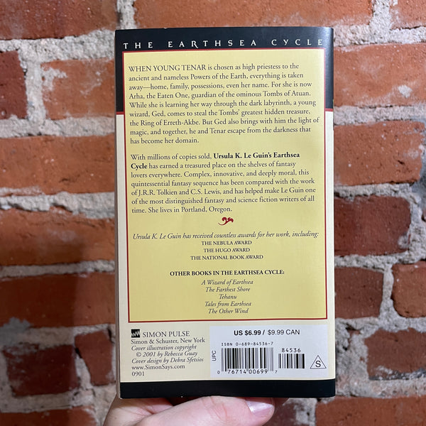 While she is learning her way through the dark labyrinth, a young wizard, Ged, comes to steal the Tombs' greatest hidden treasure, the Ring of Erreth-Akbe. But Ged also brings with him the light of magic, and together, he and Tenar escape from the darkness that has become her domain.