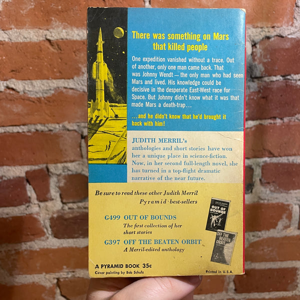 Blurb: "There was something on Mars that killed people. One expedition vanished without a trace. Out of another, only one man came back. That was Johnny Wendt - the only man who had seen Mars and lived. His knowledge could be decisive in the desperate East-West race for Space. But Johnny didn't know what it was that made Mars a death-trap... ...and he didn't know that he'd brought it back with him!"