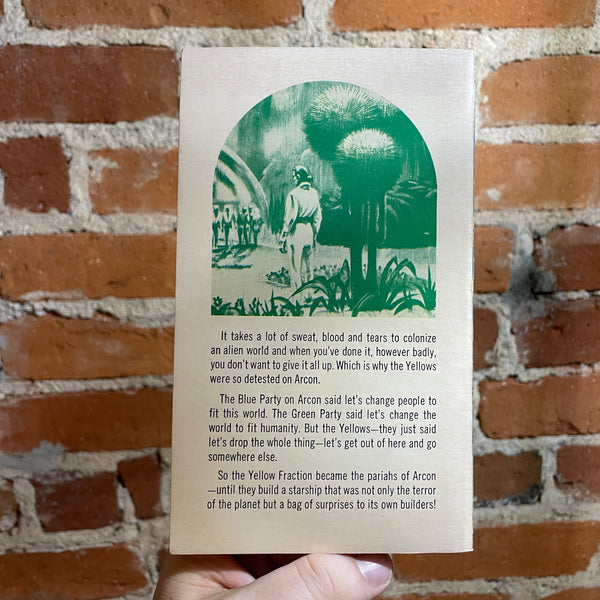 The Blue Party on Arcon said let's change people to fit this world. The Green Party said let's change the world to fit humanity. But the Yellows-they just said let's drop the whole thing-let's get out of here and go somewhere else.