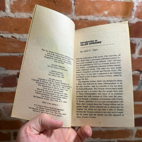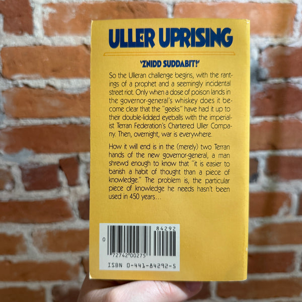 So the Ulleran challenge begins, with the rant-ings of a prophet and a seemingly incidental street riot. Only when a dose of poison lands in the governor-general's whiskey does it become clear that the "geeks" have had it up to their double-lidded eyeballs with the imperialist Terran Federation's Chartered Uller Compa-ny. Then, overnight, war is everywhere.