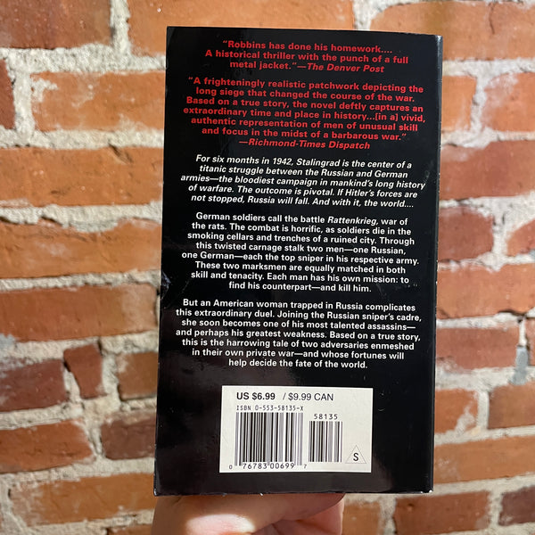 German soldiers call the battle Rattenkrieg, war of the rats. The combat is horrific, as soldiers die in the smoking cellars and trenches of a ruined city. Through this twisted carnage stalk two men—one Russian, one German-each the top sniper in his respective army.