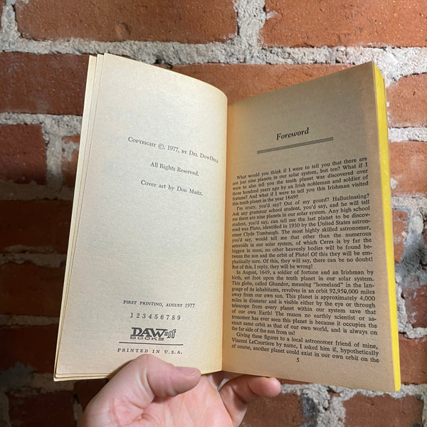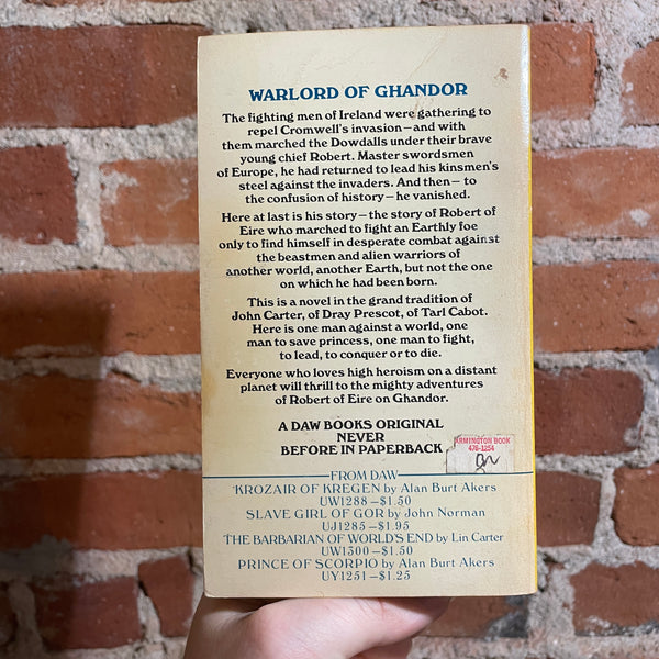 Blurb: “WARLORD OF GHANDOR - The fighting men of Ireland were gathering to repel Cromwell's invasion-and with them marched the Dowdalls under their brave young chief Robert. Master swordsmen of Europe, he had returned to lead his kinsmen's steel against the invaders. And then - to the confusion of history - he vanished.