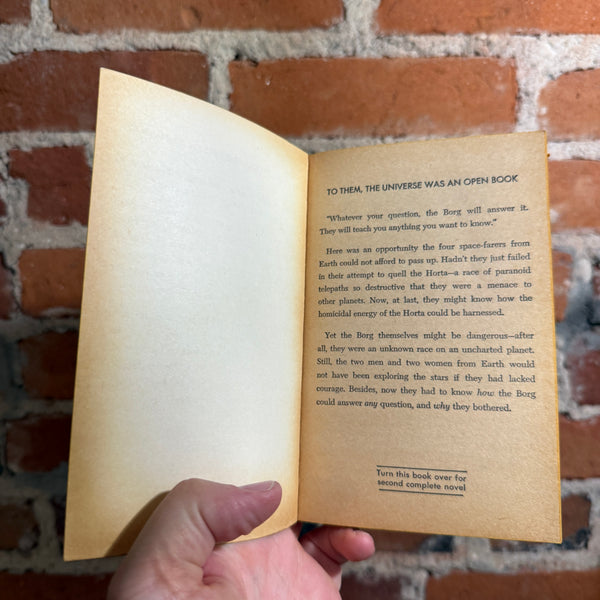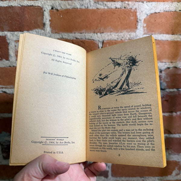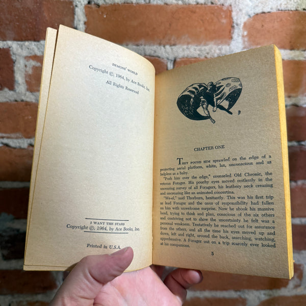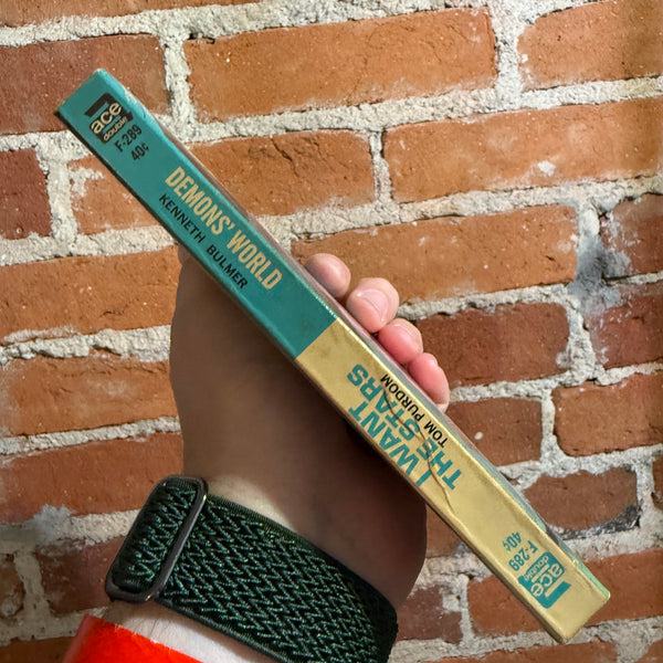 Blurb: “Two daring visions of destiny collide in this Ace Double—Tom Purdom’s I Want the Stars, where humanity leaps beyond morality to command evolution itself, and Kenneth Bulmer’s Demon’s World, where alien forces twist reality and test mankind’s sanity on a doomed frontier planet.”