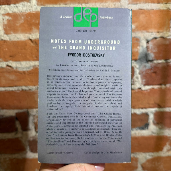 Blurb: “Dostoevsky's influence on the modern literary mind is unrivalled in its scope and vitality. Nowhere does his art appear in so quintessential a form as in Notes from Underground, certainly one of the most revolutionary and original works in world literature; nowhere is his thought presented with such authority as in "The Grand Inquisitor," an episode of central importance taken from his last and greatest novel, The Brothers Karamazov. In both these vital works Dostoevsky confronts the reader with the tragic grandeur of man, indeed, with a whole philosophy of tragedy: the tragedy of the individual and freedom, the tragedy of the historical process, the tragedy of universal evil.”