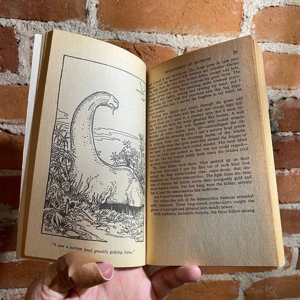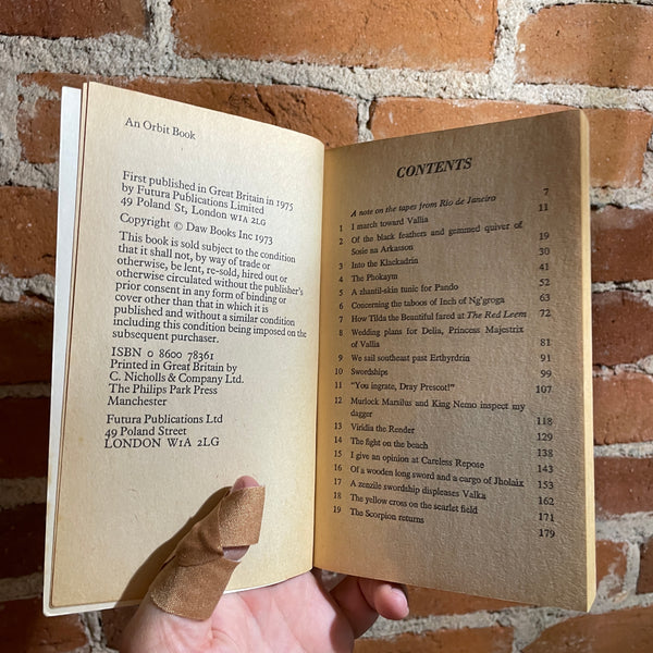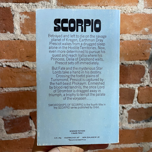 Blurb: "On the planet Kregen that circles Antares, the brightest star of the constellation of the Scorpion, two forces contend for the world's destiny. One of them, the Savanti, called in a human pawn from far-away Earth.