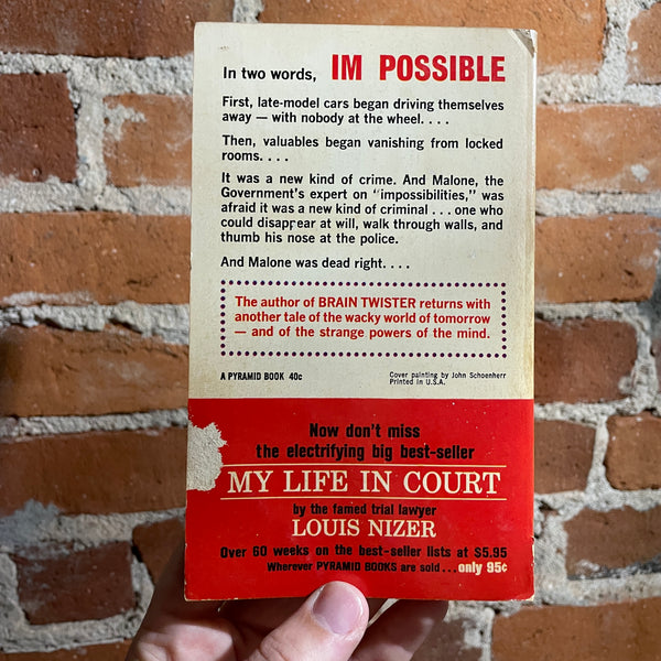 It was a new kind of crime. And Malone, the Government's expert on "impossibilities," was afraid it was a new kind of criminal...one who could disappear at will, walk through walls, and thumb his nose at the police.