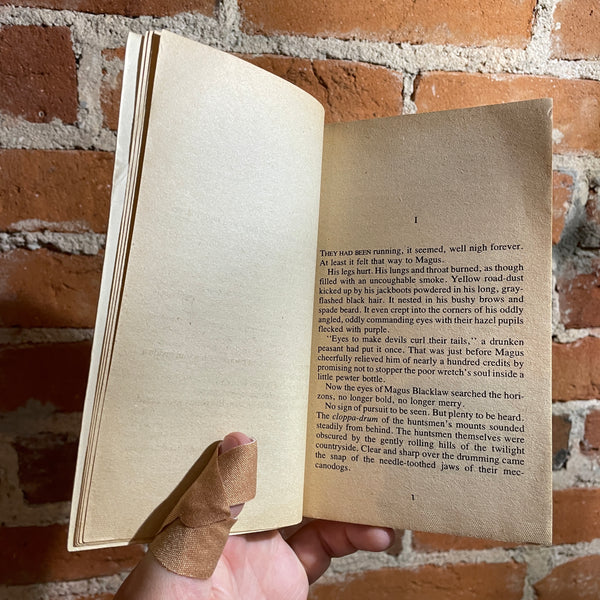 Blurb: “On a post-apocalyptic world far from Earth, Magus Blacklaw, a traveling mountebank, is in trouble with the law. He and his daughter soon fall in with a young man, and pretty soon all three are condemned to ride a skysled to exorcize the demons of a formerly commercial sister planet.”