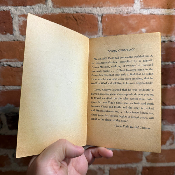 "How he succeeds and how he discovers the identity of his manipulator make up the story of this novel... whose status as an adventure novel is not affected by the strange events which befall Gosseyn from the first to the last page of this exciting book. -AUGUST DERLETH”