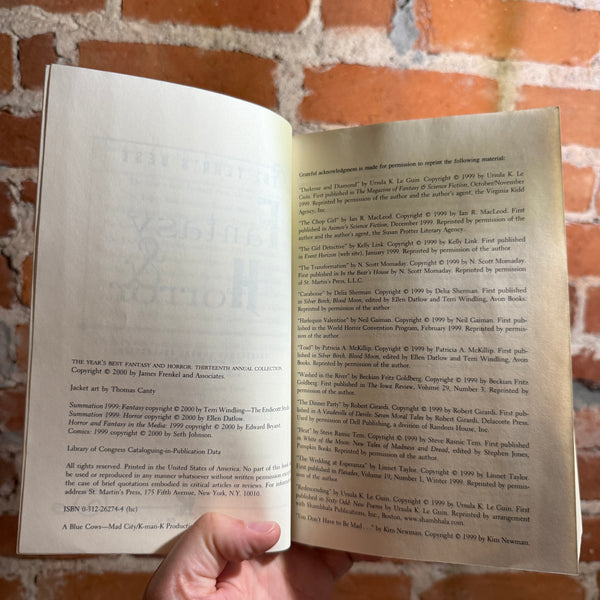 Rounding out the volume are the editors' invaluable overviews of the year in fantasy and horror, and a long list of Honorable Mentions, making this an indispensable reference as well as the best reading available in fantasy and horror.