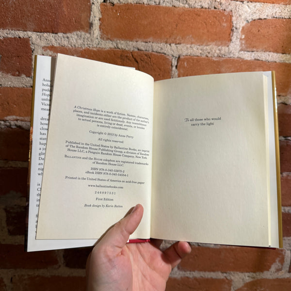Blurb: “Anne Perry's "vastly entertaining" (The Star-Ledger) holiday novels are "as delicious as mince pie and plum pudding" (Milwaukee Journal Sentinel). A Christmas Hope is just as delectable-the gripping story of an unforgettable battle between goodness and evil in Victorian London—and a lonely woman's search for meaning in her life.