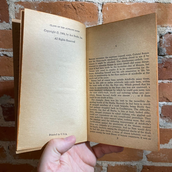 When CIA agent Chuck Rittersdorf and his psychiatrist wife, Mary, file for divorce, they have no idea that in a few weeks they will be shooting it out on Alpha III M2, the distant moon ruled by various psychotics liberated from a mental ward. Nor do they suspect that Chuck's new employer, the famous TV comedian Bunny Hentman, will also be there aiming his own laser gun. How things came to such a darkly hilarious pass is the subject of Clans of the Alphane Moon, an astutely shrewd and acerbic tale that blurs all conventional distinctions between sanity and madness."