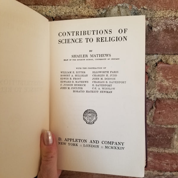 Contributions of Science to Religion - Shailer Mathews 1924 D Appleton & Co vintage HB