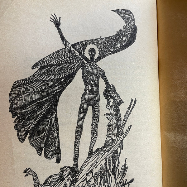 Across that barbaric and age-haunted planet his quest went relentlessly on. As he searched, so grew his own powers, his fearful heritage. Across wide seas, in conquered cities, and among haunted mountains, the hunt took him. And as he drew closer to his objective, the clearer became the way she must be slain, the more certain his ability to sunder all her witchcraft and ancient science to rid the world once and for all of his creator - the white witch from the volcano.