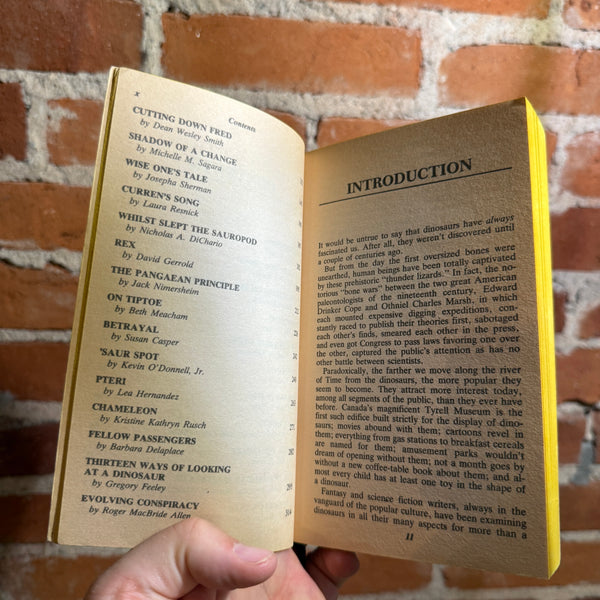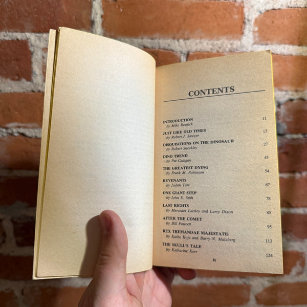 Mike Resnick and Martin H. Greenberg have called upon such gifted writers as Robert Sheckley, Pat Cadigan, Frank M. Robinson, Judith Tarr, Mercedes Lackey, Larry Dixon, Bill Fawcett, Katharine Kerr, David Gerrold, and Kristine Kathryn Rusch to create these twenty-five original stories of the most terrifying and fascinating creatures ever to inhabit the Earth-the dinosaurs. From their native Jurassic landscape to your own backyard, from their ancient mastery of the planet to modern-day curiosities trapped in an age not their own, from the earth-shaking tyrannosaur to the sky-soaring pterodactyl, here are unforgettable tales, some poignant, some humorous, some offering answers to the greatest puzzle of prehistory, but all certain to capture the hearts and imaginations of dinosaur lovers of all ages.”