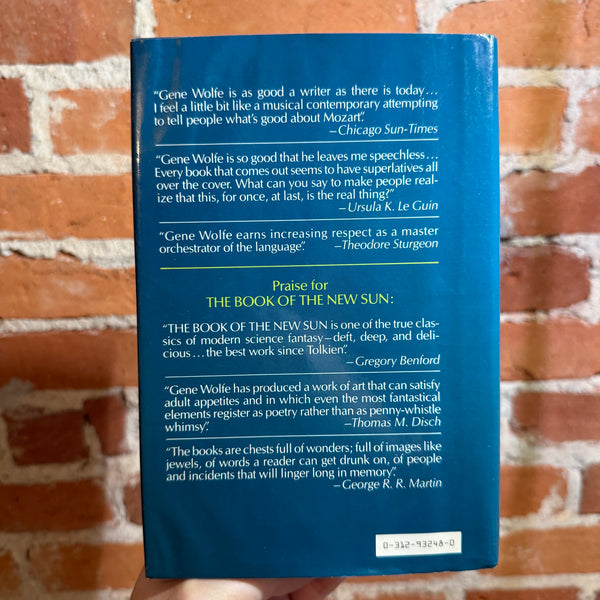 Blurb: “The completion of the contemporary mas-terpiece, The Book of the New Sun, established for Gene Wolfe the unexcelled reputation as the great living master of prose style in the science fiction field. The Chicago Sun-Times said, as the last volume was pub-lished, "It's not difficult to call him science fiction's best genuine novelist.