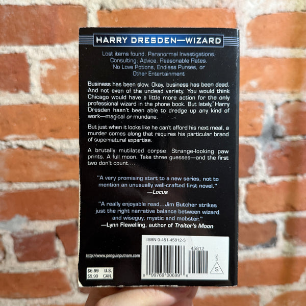 Blurb: “HARRY DRESDEN-WIZARD Lost items found. Paranormal Investigations. Consulting: Advice. Reasonable Rates. No Love Potions, Endless Purses, or Other Entertainment. Business has been slow. Okay, business has been dead.