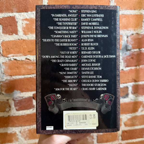Blurb: “Some galleries specialize in the arts of painting. or sculpture, or crafts. But the gallery you are about to visit specializes in the most irresistibly riveting art of all-the art of horror, as practiced to perfection by the greatest modern masters of that ghoulish genre.