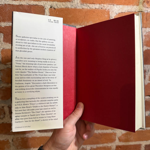 This is but a sampling of the scares awaiting you in a gathering that includes the ultimate surprise party in T.E.D. Klein's "Petey"; a children's tale for adults only in Alan Ryan's "Death to the Easter Bunny!"; a hot seat that will make your hair stand on end in Dennis Etchison's "The Chair"; the agonies of an aging vampire in Tanith Lee's "Nune Dimittis"; an affair that goes from bed to worse in Craig Shaw Gardner's "Aim for the Heart"; a doctor of the mind