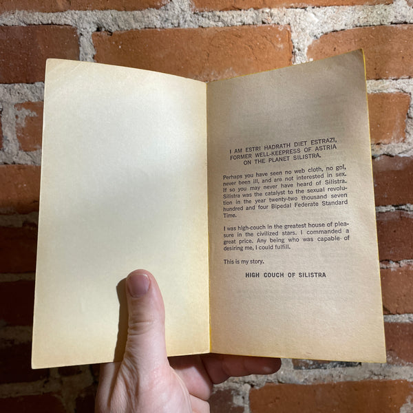 "The amazing and erotic adventures of the most beautiful courtesan in tomorrow's universe" - Frederik Pohl