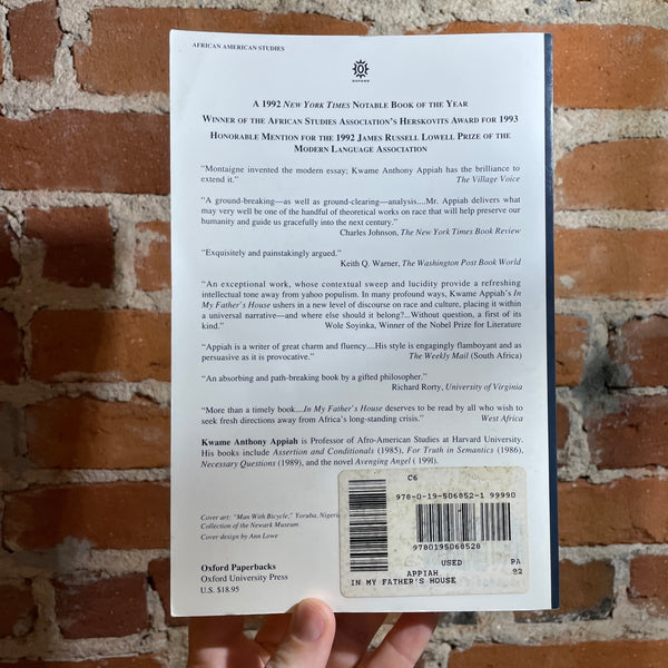 "An exceptional work, whose contextual sweep and lucidity provide a refreshing intellectual tone away from yahoo populism. In many profound ways, Kwame Appiah's In My Father's House ushers in a new level of discourse on race and culture, placing it within a universal narrative-and where else should it belong?... Without question, a first of its kind."