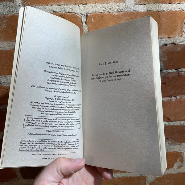 Indiana Jones and the Unicorn’s Legacy - Rob MacGregor - 1992 Bantam Paperback