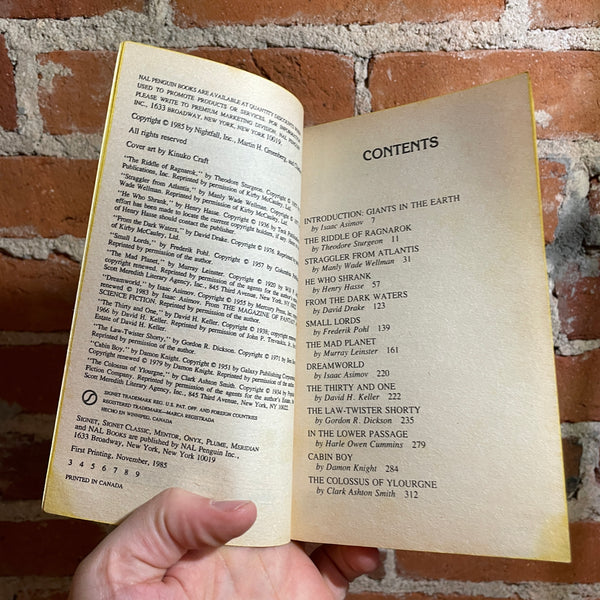 Blurb: THEODORE STURGEON • MANLY WADE WELLMAN • HENRY HASSE • DAVID DRAKE • FREDERIK POHL • MURRAY LEINSTER • ISAAC ASIMOV • DAVID H. KELLER • GORDON R. DICKSON • HARLE OWEN CUMMINS • DAMON KNIGHT • CLARK