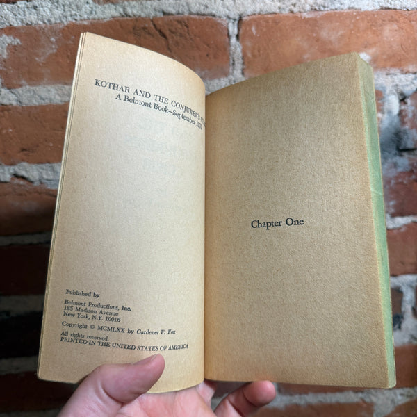 The gray warhorse reared high, and Kothar brought the singing blade downward through flesh and blood into the shoulder of a third man. As he pulled his red-stained steel free, the blond barbarian saw that the remaining two warriors were backing away from him, glancing at one another in amazement . . .”
