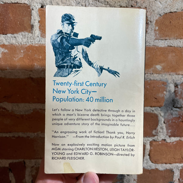 Blurb: “First published in 1966, Harrison's novel of an overpopulated urban jungle, a divided class system—operating within an atmosphere of riots, food shortages, and senseless acts of violence—and a desperate hunt for the truth by a cynical NYC detective tells a classic tale of a dark future.”