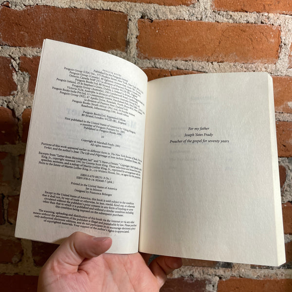 Marshall Frady, the reporter who became the unofficial chronicler of the civil rights movement, here re-creates the life and turbulent times of its inspirational leader. Deftly interweaving the story of King’s quest with a history of the African American struggle for equality, Frady offers fascinating insights into his subject’s magnetic character, with its mixture of piety and ambition. He explores the complexities of King’s relationships with other civil rights leaders, the Kennedy and Johnson administrations, and the FBI’s J. Edgar Hoover, who conducted a relentless vendetta against him. The result is a biography that conveys not just the facts of King’s life but the power of his legacy.”