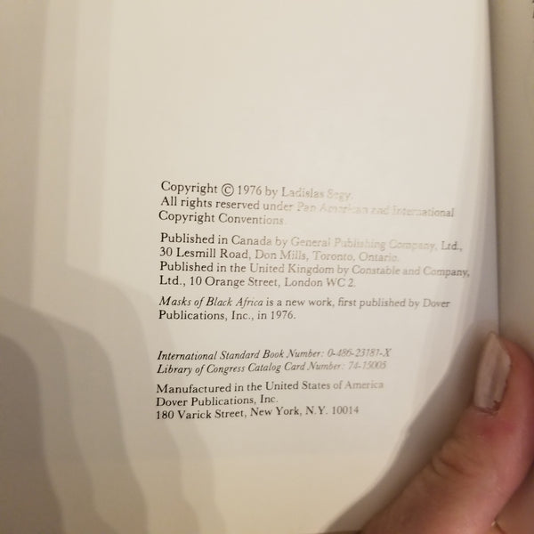 Masks of Black Africa - Ladislas Segy 1976 Dover Publications vintage PB
