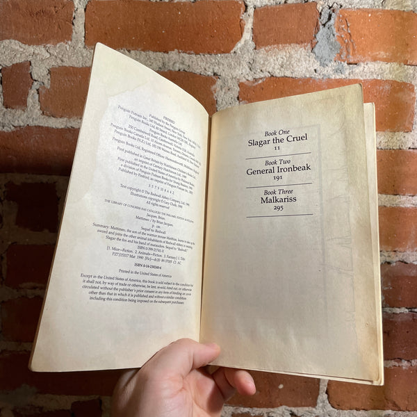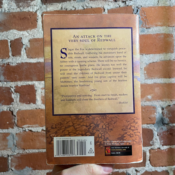 BlurbThe third addition to the beloved Redwall series takes place during the summer of the Golden Plain. Preparation for a great feast are underway at Redwall Abbey, and the young mouse Mattimeo is contributing his share of the labors. But Mattimeo is the son of Matthias, the guardian of Redwall Abbey, and it is this fact that makes him the target of a fiendish kidnapping plot contrived by the vicious fox, Slagar the Cruel. When Matthias and his brave followers abandon their homes and face enslavement for the return of their children, the captive Mattimeo stands to prove his worth--and an unexpected hero is born.