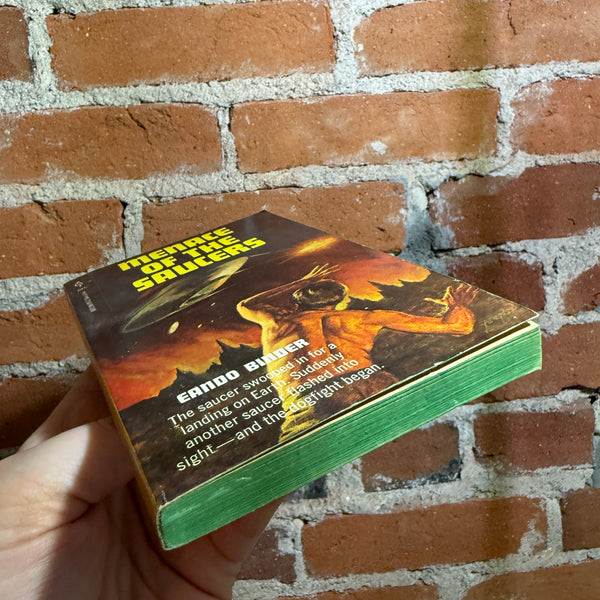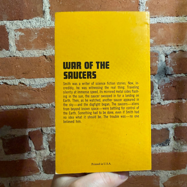Smith was a writer of science fiction stories. Now, in-credibly, he was witnessing the real thing. Traveling silently at immense speed, its mirrored metal sides flashing in the sun, the saucer swooped in for a landing on Earth. Then, as he watched, another saucer appeared in the sky-and the dogfight began. The saucers-aliens from beyond known space-were battling for control of the Earth. Something had to be done, even if Smith had no idea what it should be. The trouble was—no one believed him.”