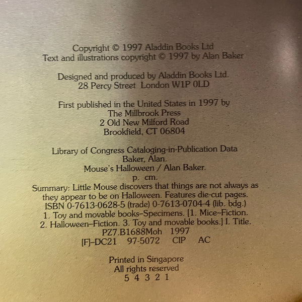 Blurb: “One Halloween night Mother Mouse and Baby Mouse are hurrying home through the darkening forest. Baby Mouse sees some terrifying sights as he scampers, along, but Mommy reassures him that all is well.