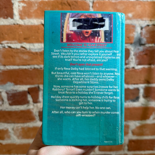 Blurb: “Don't listen to the stories they tell you about Fear Street. Wouldn't you rather explore it yourself... and see if its dark terrors and unexplained mysteries are true? You're not afraid, are you? Don’t open that present!