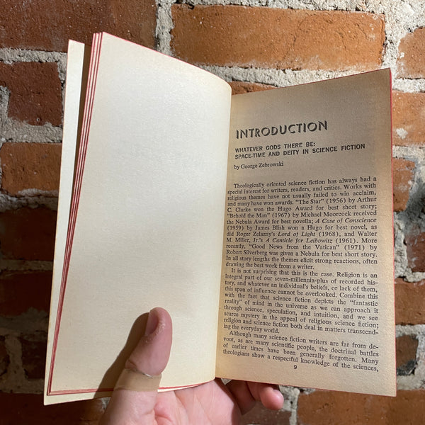 In STRANGE GODS, top science-fiction writers answer that question in twelve selections that will stir your imagination and command your awe.”