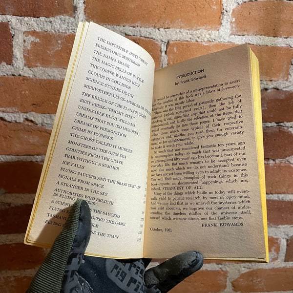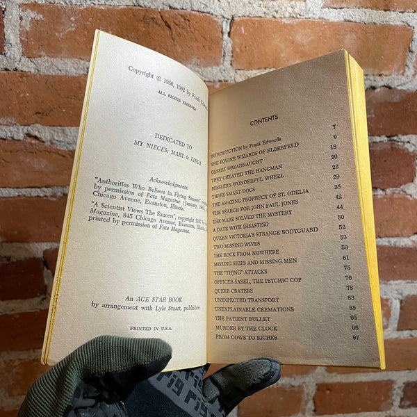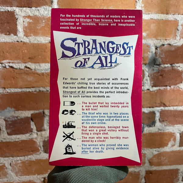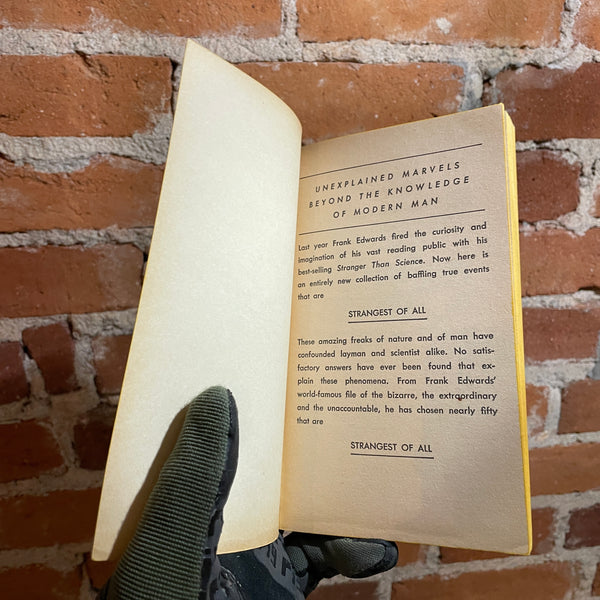 Blurb: A NEW COLLECTION OF THE INCREDIBLE, THE EERIE THE AMAZING, FANTASTIC BUT TRUE STORIES INVOLVING VANISHING SHIPS, DISAPPEARING PEOPLE, SCIENTIFIC MIRACLES, SUPERNATURAL EVENTS AND A HOST OF OTHER ASTOUNDING INCIDENTS THAT MAN AND SCIENCE HAVE NEVER BEEN ABLE TO EXPLAIN.