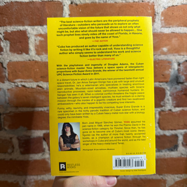 Funny, witty, raunchy, and irrepressibly vivacious, Super Extra Grande is a rare specimen in the richly parodic tradition of Cuban science fiction, and could only have been written by a Cuban heavy-metal rock star with a biology degree: the inimitable Yoss.”