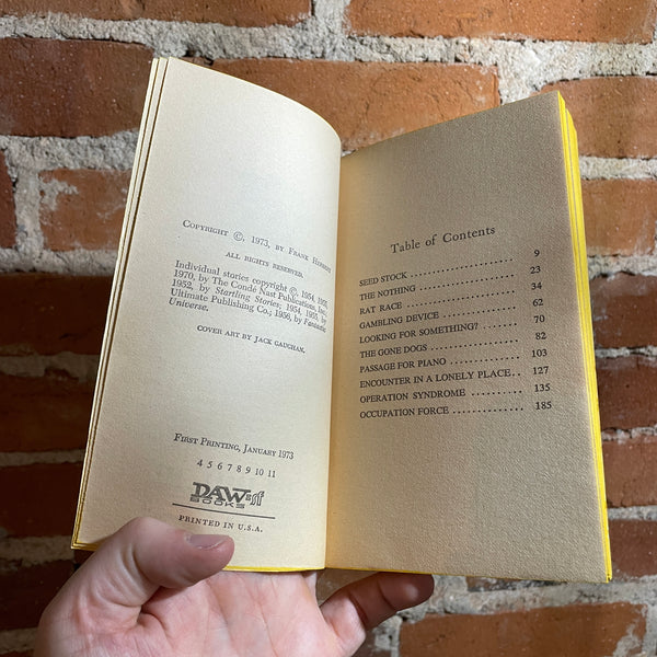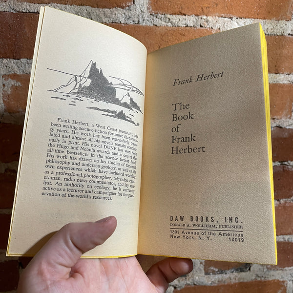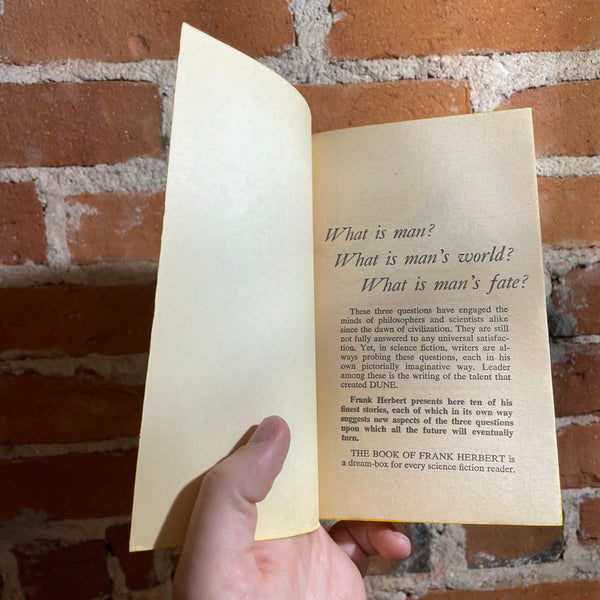 and other titans of science fiction the name of FRANK HERBERT whose epic novel DUNE made SF bestseller history-along with his DUNE MESSIAH and CHILDREN OF DUNE. DAW BOOKS proudly presents Frank Herbert's own selection of his most outstanding fiction -ten mind-tingling tales of time, space and the enigmas of man's future... THE BOOK OF FRANK HERBERT