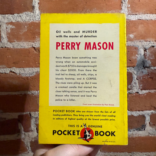 Perry Mason knew something was wrong when an automobile accident worth $750 in damages brought his client $2000. From there the trail led to sheep, oil wells, ships, a bloody footstep, and A CORPSE.
