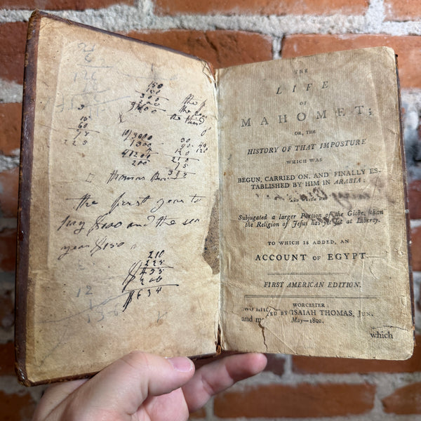 Blurb: “An early and striking American imprint, The Life of Mahomet (1802) offers a vivid, polemical biography shaped by Enlightenment-era European perspectives. Printed in Worcester by Isaiah Thomas Jr., this First American Edition reflects early U.S. religious and historical scholarship, alongside period attitudes toward Islam and the broader Middle East.
