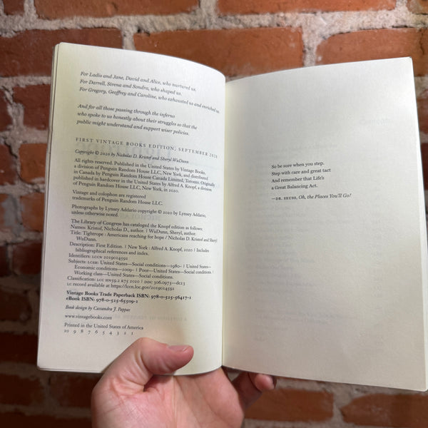 How can we rebuild America so that it is a land with opportunity for all, wherever we live, whatever our complexion? Tightrope outlines a better path for our nation, but first it takes us through an "other America" where wages are low and stagnant, decent jobs are scarce, racial inequity is stark, and Americans die of drug overdoses every seven minutes. Kristof and WuDunn tell the story of America's crisis partly through the lives of friends Kristof grew up with in rural Yamhill, Oregon, a working-class area that was hit badly by the disappearance of blue-collar jobs. Their powerful personal stories and those of others bring to life how we got into this mess and also show a path by which we can right ourselves as a country, redress racial inequity, reduce inequality, and build economic opportunity. Tightrope is a story of hope that is riveting, deeply personal, and impossible to ignore.