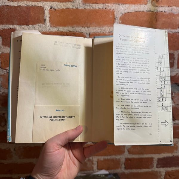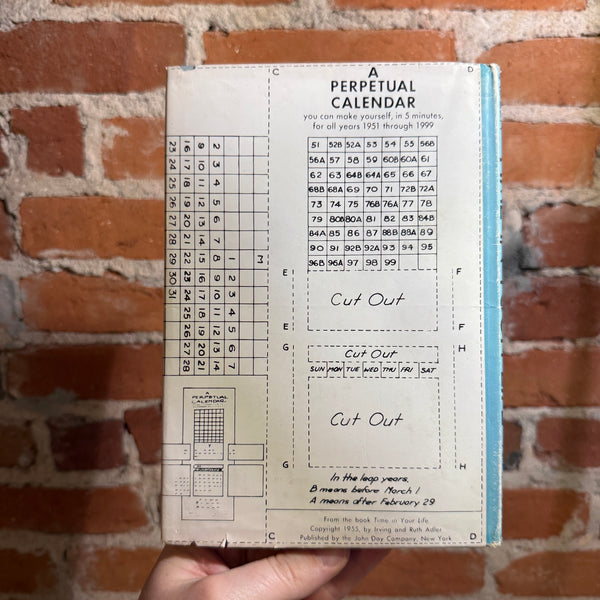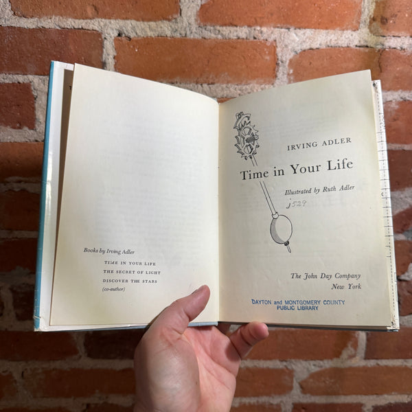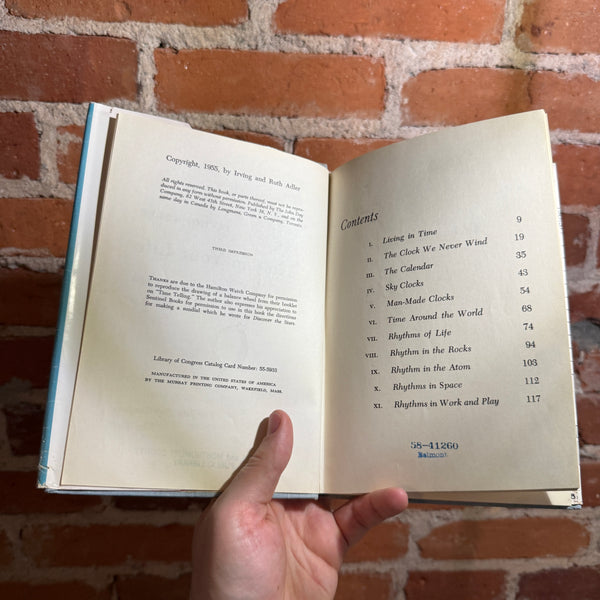 These questions suggest a few of the fascinating pieces of information to be found in Time in Your Life. There have been one or two books about clocks and calendars, but we believe that no author previously has taken the entire subject of time for a book for young people. So broad is the subject that it takes us into many fields of knowl-edge, discussing the stars and planets (man's oldest time-pieces); rocks and rivers; history and the calendar; clocks and watches; time zones; rhythms of organic life; rhythms of the universe and of the atom; music and dancing, etc., etc.