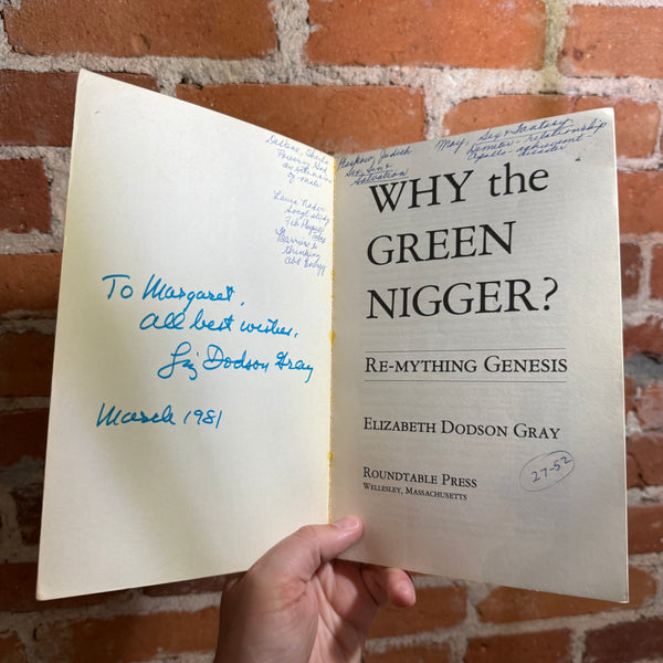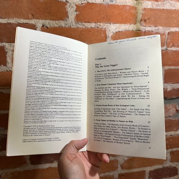 Note: Elizabeth Dodson Gray is a feminist theologian and author. The work is a critique of Western patriarchal religion and its impact on the environment. The title is a deeply controversial term used by the author to describe the Earth as a marginalized entity