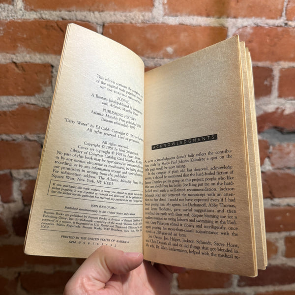 Blurb: “In his critically acclaimed Snow Crash and The Diamond Age, Neal Stephenson created wild visions of the distant future. But in Zodiac, he takes us to his strangest landscape yet— right here, right now....
